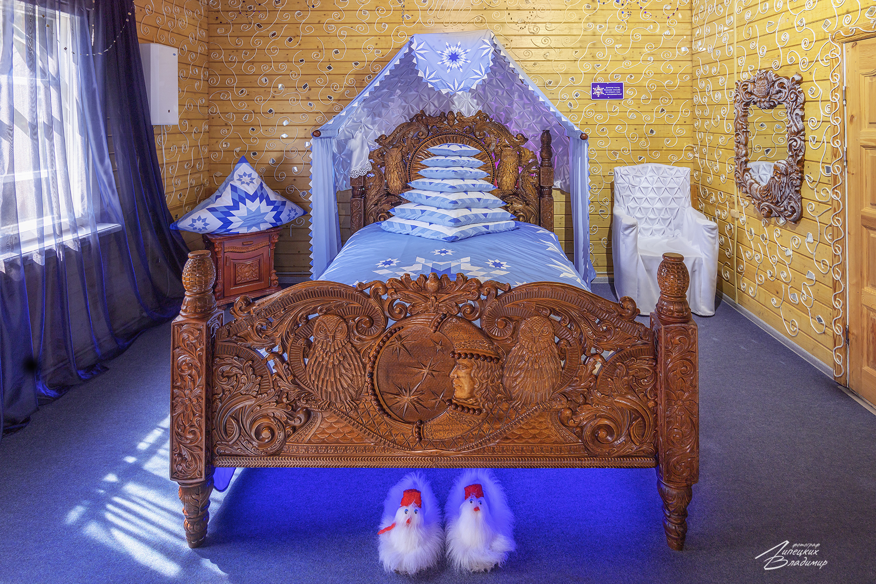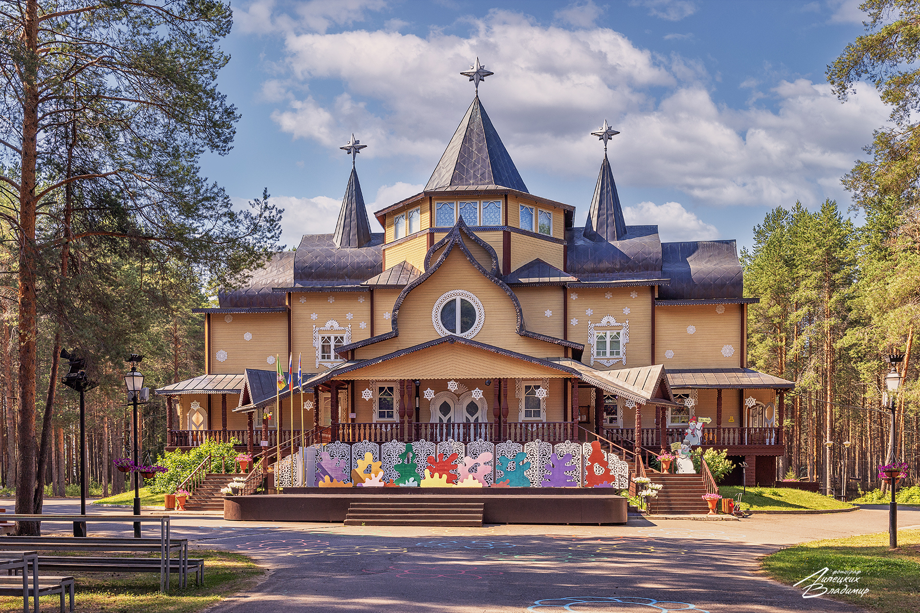В 12 км от Великого Устюга, в своей вотчине, живёт главный волшебник страны – Российский Дед Мороз. Сегодня вотчина это сказочный городок на 43 гектарах соснового бора.